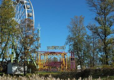 Keywords: abandoned carnival metal abandoned derelict weed carnival trees old ferris wheel