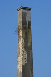 Keywords: abandoned place high chimney fireplace spinning ruin decay factory building industry transient overgrown ailing leave