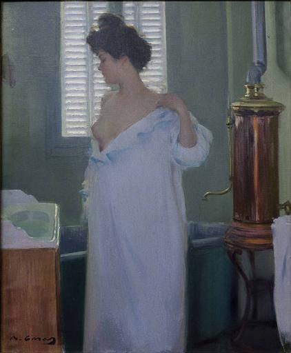 | Keywords: Abans del bany.jpg Artwork Q11679864 creator Ramon Casas title ca Abans del bany 1894 Oil on canvas cm 72 5 60 0 Institution Museum of Montserrat Monestir de Montserrat http //www museudemontserrat com/ca/coleccions/pinturamoderna/96/ramon-casas/506 museus en lĂnia 1118642 PD-old-70 Paintings by Ramon Casas Paintings by Ramon Casas in Museum of Montserrat 1890s oil on canvas paintings in Spain 1894 oil on canvas paintings 19th-century oil paintings of standing women at three-quarter length Bathrooms Bathroom equipment Boilers Undressing women in art Washstands in art White clothing in art female Paintings of women at their toilet |