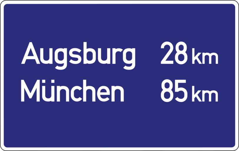 | Keywords: Abb. 10 - Fernzielschild, Autobahn-Normalien 1958 - Beispiel.svg de Abb 10 Fernzielschild auf der A 8 von Ulm Richtung Augsburg kommend Für das Blau wurde damals das RAL-Farbtonregister 840 R gewählt Der dort verzeichnete Ton ist in der Abbildung wiedergegeben Zeichen in dieser Ausführung wurde erstmals im September 1958 vorgestellt à ber einem zeitgenössischen Photo nachgezeichnet Quelle Fritz Heller Neue Ausführungen von Markierungen und Verkehrszeichen auf den Autobahnen in der Bundesrepublik Deutschland In Die Autostrasse 4 1959 S 71 Abbildung mit Größenangaben own Mediatus 2016-03-20 + Signs User Mediatus/no-new-version Cc-zero PD-VzKat Diagrams of direction road signs of Germany Diagrams of motorway road signs of Germany 1958 set Bundesautobahn 8 |
