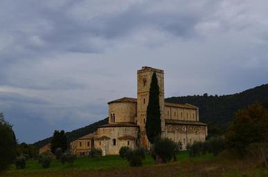 Keywords: abbey church religion thuja poplar hills partly cloudy cathedral tuscany italy architecture sky clouds