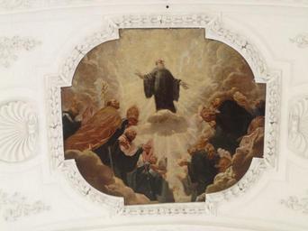 | Keywords: Abbey Irsee 133.JPG Apotheosis of Saint Benedict with saints of the Benedictine order painting oil on canvas by Magnus Remy vault of the church of Irsee Abbey Germany Verklärung des hl Benedikt mit Heiligen des Benediktinerordens ; Deckengemälde Öl auf Leinwand von Magnus Remy 1702/1703; Langhausgewölbe der ehemaligen Klosterkirche der Abtei Irsee in Irsee Landkreis Ostallgäu Bayern self-photographed Mattana 2009-01-26 Images by Mattana-Irsee Germany Interior of Klosterkirche Irsee Magnus Remy 1702 paintings Frescos of Benedict of Nursia Frescos in Swabia administrative region |
