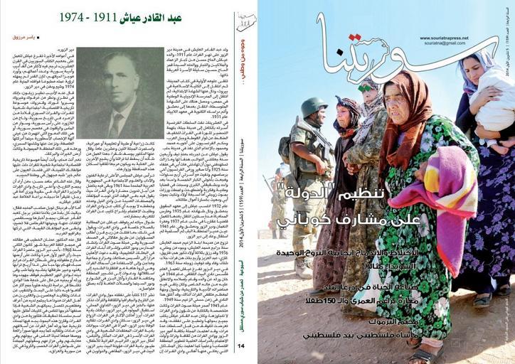 | Keywords: Abd Alkader Ayyash, souriatnapress.jpg ar مقالة عن الباحث عبد القادر العياش، مجلة سوريتنا ، العدد 159، 2014 2014-01-05 http //www souriatnapress net/ souriatnapress other versions cc-by-sa-3 0 PD-Syria Uploaded with UploadWizard Syrian Ayash Alhaj |