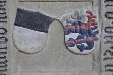 | Keywords: Abenberg St Jakob Epitaph 3d.jpg Abenberg Kath Pfarrkirche St Jakob Epitaph Seckendorff von 1498 Detail Wappen Mitte Schenk von Geyern Truchseß von Pommersfelden own own photograph 2015-07 Photo Andreas Praefcke Photos by User AndreasPraefcke Wall mounted church monuments in St Jakob Abenberg Reliefs of coats of arms in Abenberg Coats of arms of Schenk von Geyern family Coats of arms of Truchseß von Pommersfelden family | ||||
