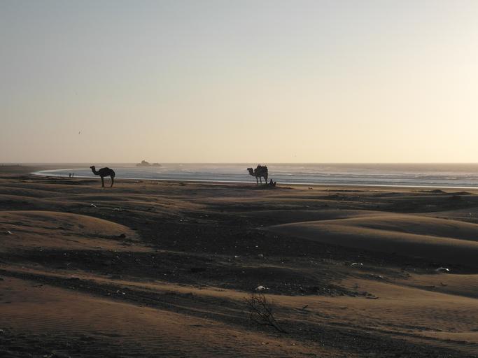 Keywords: abendstimmung desert beach camels morocco essaouira