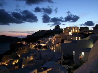 Keywords: abendstimmung santorini oia homes crater rim clouds sky lights greece cycladic style architecture holiday tourism