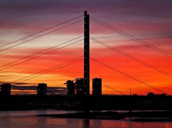 Keywords: abendstimmung sunset afterglow romance evening sky architecture silhouette bridge düsseldorf mood