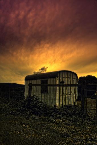 Keywords: abendstimmung sunset dramatic sheet metal hut