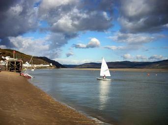 Keywords: aberdyfi england great britain bay harbor water reflections sky clouds sailboat beach shore shoreline nature outside