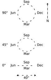 | Keywords: Aberration3.svg Effect of annual aberration on the apparent position of three stars at ecliptic longitude 270 degrees and ecliptic latitude 90 45 and 0 degrees respectively Such stars would transit the observer's meridian at midday on the December solstice and midnight on the June solstice Drawn by Portnadler Own 2007-04-13 helix84 Image Aberration3 png Diagrams by helix84 Stellar aberration | ||||