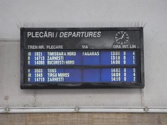 | Keywords: Abfahrtstafel im Bahnhof von Kronstadt 2013.jpeg de Abfahrtstafel im Bahnhof von Kronstadt Târgu Mureș ist noch in alter Schreibung geschrieben eo Tabulo de trajn-ekiroj en la stacidomo de BraŠovo La skribo de Târgu Mureș ankoraŠuzas la malnovan formon kun î own Aisano 2013-02-21 Brașov train station |