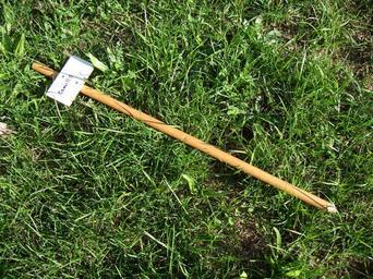 Keywords: Abgangsstab.JPG en signpost for marking the start of the track at the scent pad de Abgangsstab für die Fährtenarbeit own Anka Friedrich 2008-08-14 Tracking dogs