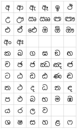 | Keywords: Abi.png en Reproduction of chart seen on Sinhala language school text books distributed by the Government of Sri Lanka under the Department of Education This is work done by the government and is in the public domain in Sri Lanka Sinhala language school text book Government of Sri Lanka Uvants2 2011-01-27 Sinhala writing |