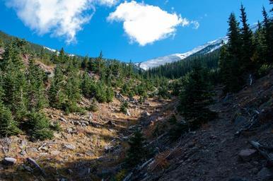 Keywords: abineau trail abineautrail abineau trail #127 abineautrail127 abineau trail no. 127 abineautrailno127 abineau-bear jaw loop abineaubearjawloop arizona coconino national forest coconinonationalforest flagstaff ranger district flagstaffrangerdistrict forest service forestservice humphreys peak humphreyspeak kachina peaks wilderness kachinapeakswilderness san francisco mountain sanfranciscomountain san francisco peaks sanfranciscopeaks usfs flagstaff forest hiking mountain outdoors peaks trail wilderness outdoor landscape mountainside hill tree plant Abineau Trail is a steep 1,800 foot climb over two miles up the slopes of the San Francisco Peaks through Abineau Canyon. The trail meets the Waterline Trail at the top, which can be followed down to Bear Jaw Trail to return to the trailhead. Each leg of the loop is around two miles long, plus a 0.4 mile connector trail from the trailhead to the loop, making a total loop hike of seven miles. The loop is one of the quintessential autumn hikes in the San Francisco Peaks. Aspens along all three legs of the loop turn gold, and falling leaves carpet the forest floor and decorate the conifers. A storm system passed through the area October 4-7, 2015, raining at lower elevations and snowing on the upper reaches of the San Francisco Peaks. The snow-capped Peaks were a wonderful treat after the few days grey, cloudy, wet weather that had put a damper on outdoor activity. Photo by Deborah Lee Soltesz, October 8, 2015. Credit: U.S. Forest Service, Coconino National Forest. For more information about this trail, see the Abineau-Bear Jaw Loop trail description on the Coconino National Forest website. Abineau Trail is a steep 1,800 foot climb over two miles up the slopes of the San Francisco Peaks through Abineau Canyon. The trail meets the Waterline Trail at the top, which can be followed down to Bear Jaw Trail to return to the trailhead. Each leg of the loop is around two miles long, plus a 0.4 mile connector trail from the trailhead to the loop, making a total loop hike of seven miles. The loop is one of the quintessential autumn hikes in the San Francisco Peaks. Aspens along all three legs of the loop turn gold, and falling leaves carpet the forest floor and decorate the conifers. A storm system passed through the area October 4-7, 2015, raining at lower elevations and snowing on the upper reaches of the San Francisco Peaks. The snow-capped Peaks were a wonderful treat after the few days grey, cloudy, wet weather that had put a damper on outdoor activity. Photo by Deborah Lee Soltesz, October 8, 2015. Credit: U.S. Forest Service, Coconino National Forest. For more information about this trail, see the Abineau-Bear Jaw Loop trail description on the Coconino National Forest website.