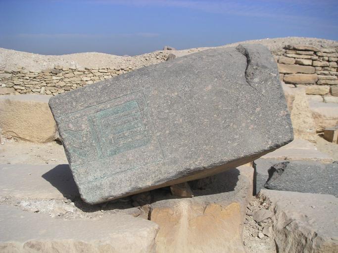 Keywords: Abousir Sahoure 04.jpg Montant en granit d'une porte du temple de Sahourê à Abousir 2007-03-21 own assumed Neithsabes Source Sebi fr Appareil Minolta DiMAGE Xt fr Date Novembre 2004 Mortuary Temple of Sahure Ancient Egyptian art made from granite |