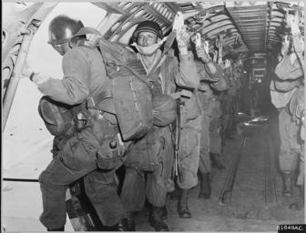| Keywords: About to step into thin air, a paratrooper of the 187th Regimental Combat Team pauses momentarily while the man below... - NARA - 542244.tif Scope and content About to step into thin air a paratrooper of the 187th Regimental Combat Team pauses momentarily while the man below clears the area This is a practice parachute jump in which 1 000 troopers fully armed for combat were first transported in the U S Far East Air Forces C-54 Skymasters to a rendezvous point transferred into C-46 Commandos and flown to the present drop zone 315th Air Division Combat Cargo transports have carried the 187th troopers on two actual combat assignments during the course of the Korean War General notes 542244 Local identifier 342-AF-81649AC Department of Defense Department of the Air Force 09/26/1947 - Still Picture Records Section Special Media Archives Services Division NWCS-S National Archives at College Park 8601 Adelphi Road College Park MD 20740-6001 ca 09/1951 Record group Record Group 342 Records of U S Air Force Commands Activities and Organizations 1900 - 2003 Record group ARC 654 Black and White Photographs of U S Air Force and Predecessors' Activities Facilities and Personnel Domestic and Foreign compiled 1930 - 1975 documenting the period 1863 - 1975 Series ARC 542185 File unit File unit ARC Variant control numbers Agency-Assigned Identifier NASM 4A 37924<br /> NAIL Control Number NWDNS-342-AF-81649AC yes Other versions NARA-cooperation PD-USGov 1951 in Korea United States Army in the Korean War 187th Infantry Regiment United States Curtiss C-46 Commando Paratroopers |