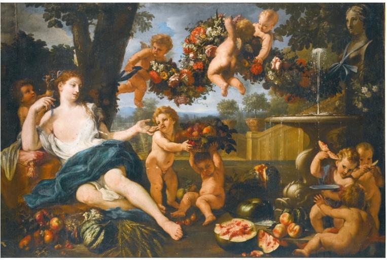 | Keywords: Abraham Brueghel, Guillaume Courtois - Ceres at a fountain, attended by putti.jpg Artwork Creator Abraham Brueghel and Creator Guillaume Courtois en Ceres at a fountain attended by putti 1665-1675 http //www sothebys com/en/auctions/ecatalogue/2012/old-master-british-paintings-day-sale-l12037/lot 179 lotnum html Oil canvas size cm 177 255 object history credit line Sold at Sotheby's on 6 December 2012 in London lot 179 accession number PD-old-100 PD-old-100 Abraham Brueghel Guillaume Courtois 17th-century still life paintings of fruits Humans with putti 17th-century still life paintings of flowers Paintings of Ceres Oil still life paintings 17th-century oil on canvas paintings |