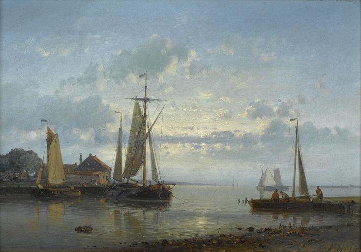 | Keywords: Abraham Hulk, Snr - Setting off for the fishing grounds.jpg Artwork Creator Abraham Hulk oil panel cm 17 8 25 4 accession number object history credit line exhibition history A Hulk ~ lower left signature http //www bonhams com/auctions/14977/lot/82/ Bonhams London 11 Sep 2007 Lot 82 PD-old-100 Abraham Hulk Oil paintings of seascapes Paintings of boats 19th-century paintings Images from Bonhams | ||||