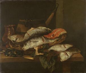 | Keywords: Abraham van Beijeren 010.jpg Artwork Q17319676 Creator Abraham van Beijeren ~ 1650-1670 Oil on canvas cm 74 87 Institution Rijksmuseum Amsterdam SK-A-25 LangSwitch Still Life with Fish Stilleven met vissen ~ 1650 - ~ 1670 15741 Visstilleven met kabeljauw en zalmmoten in een mand schol en mosselen op de voorgrond een kan en een houten emmer op de achtergrond 1650-1665 object history by 1808-06 Gerrit van der Pot Heer van Groeneveld Rotterdam ProvenanceEvent 1808-06-06 sale Gerrit van der Pot Heer van Groeneveld Gerard van Nijmegen Nicolaas Muijs Willem van Leen gebr van Rijk Rotterdam 15 ProvenanceEvent 1808 purchase LangSwitch das the le het Rijksmuseum Amsterdam Amsterdam loan LangSwitch das the au het Museum Beeckestijn Velsen LangSwitch das the le het Rijksmuseum Amsterdam Amsterdam exhibition history credit line AVB f monogram bottom right la accession number SK-A-25 www rijksmuseum nl http //www rijksmuseum nl Home http //hdl handle net/10934/RM0001 COLLECT 6029 Info place of creation Northern Netherlands PD-old-100 Paintings by Abraham van Beijeren 1650 Paintings by Abraham van Beijeren in the Rijksmuseum Amsterdam 1650 1650s paintings in the Netherlands Paintings of baskets 17th-century oil on canvas paintings in the Netherlands 17th-century still life paintings in the Netherlands Still life paintings of fish 1650s still life paintings Baroque still life paintings of food |
