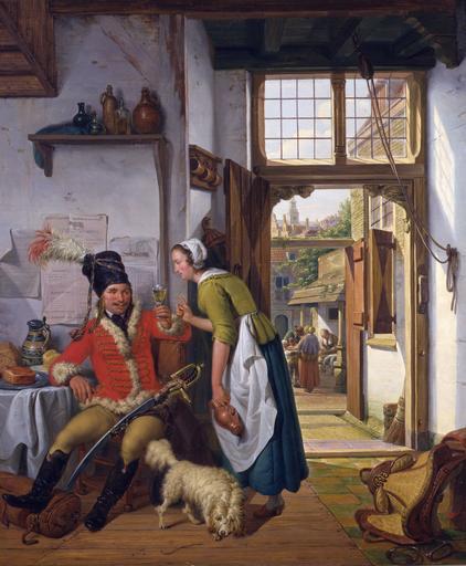 | Keywords: Abraham van Strij (I) 001.jpg Artwork Creator Abraham van Strij 64188 </ref> Alternate titles 1825 Oil on canvas size cm 72 61 Private collection 64188 object history ProvenanceEvent 1986-04-14 anonymous sale Mak van Waay Amsterdam 254 unknown by 1987-1988 Peter van Os Antiques Fine Arts art dealer Arnhem ProvenanceEvent 2004-11-02 anonymous sale Sotheby's Amsterdam 63 Stichting Vrienden van het Dordrechts Museum ProvenanceEvent 2005 gift LangSwitch das the au het Dordrechts Museum Dordrecht Stichting Vrienden van het Dordrechts Museum credit line A Van Stry / 1825 signature and date bottom right accession number WGA link 21891 http //www wga hu/art/s/strij/abraham/interior jpg http //www wga hu/html/s/strij/abraham/interior html painting interior Dutch 1751-1800 PD-old-100 LangSwitch Notes Noten <references /> WGA form painting WGA type interior WGA School Dutch WGA time period 1751-1800 Abraham van Strij Soldier and a waitress in a tavern 19th-century paintings in unidentified private collections Paintings in the Dordrechts Museum aan de Haven 1825 oil on canvas paintings 1820s genre paintings 19th-century paintings of dogs Jugs in art Military people and civilians in art People in rooms in art Household Uniform pelisses Sheepskin clothing Fur fashion in 1825 |