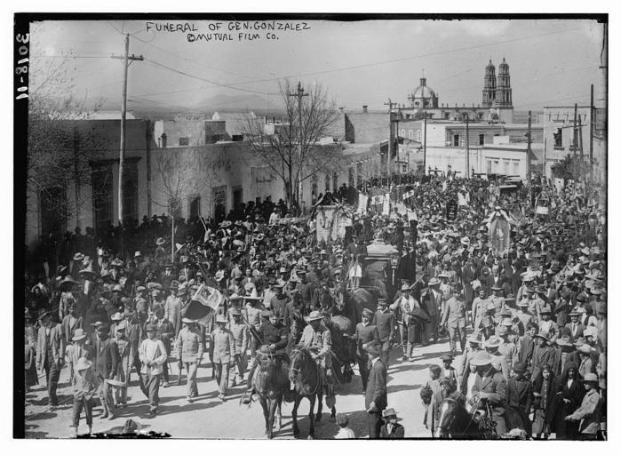 Keywords: AbrahamGonzalesFuneral.jpg Abraham González Casavantes June 7 1864 “ March 7 1913 was the provisional and constitutional governor of the Mexican state of Chihuahua during the early period of the Mexican Revolution He was the political mentor to the revolutionary Pancho Villa whom he had met and befriended before the revolution Bain News Service publisher Funeral of Gen Abraham González between ca 1910 and ca 1915 1 negative glass ; 5 x 7 in or smaller Notes Title from unverified data provided by the Bain News Service on the negatives or caption cards Forms part of George Grantham Bain Collection Library of Congress Format Glass negatives Rights Info No known restrictions on publication Repository Library of Congress Prints and Photographs Division Washington D C 20540 USA http //hdl loc gov/loc pnp/pp print hdl loc gov/loc pnp/pp print General information about the Bain Collection is available at http //hdl loc gov/loc pnp/pp ggbain hdl loc gov/loc pnp/pp ggbain Persistent URL http //hdl loc gov/loc pnp/ggbain 15723 hdl loc gov/loc pnp/ggbain 15723 Call Number LC-B2- 3018-11 http //www flickr com/photos/library_of_congress/5169000119/ Funeral of Gen Ganzalez LOC LOC-image ggbain 15723 http //www flickr com/photos/8623220 N02 The Library of Congress PD-Bain The Library of Congress http //flickr com/photos/8623220 N02/5169000119 17 15 17 November 2010 UTC pd Chihuahua state Abraham González Pancho Villa