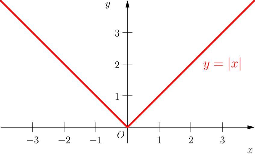 | Keywords: Absolute Value.svg Verlauf der Absolutbetragsfunktion auf <math>\R</math> own 2007-08-25 User LennyWikidata Released into the public domain by the author Other fields Asymptote + import graph; import settings; outformat pdf ; size 300 300 ; // Function real f real x return x > 0 x -x; draw graph f -4 4 red+2 ; label scale 1 3 y x 3 2 red ; // Axes xaxis Label x Ticks new real -3 -2 -1 1 2 3 Arrow xmin -4 xmax 4 ; yaxis Label y Ticks new real 1 2 3 Arrow ymin -0 5 ymax 4 ; // Origin labelx O 0 SW ; Absolute value |
