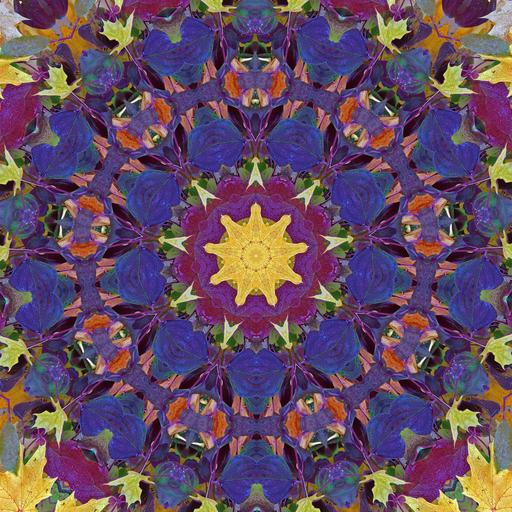 Keywords: abstract art artistic texture blue purple yellow leaf leaves fall leaves mandala kaleidoscope colorful color colour autumn pattern foliage golden flora nature plant vibrant decoration