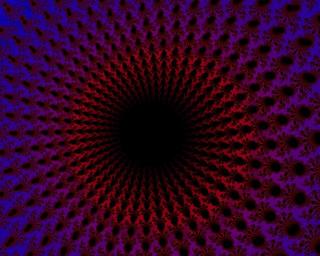 Keywords: abstract art tunnel red blue mandelbrot fractal spiral darkness optical deception three dimensional surreal modern art digital eye pupil iris depression self-similar