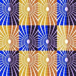 | Keywords: abstract radial radiating pattern colorful blue gold hues shades shapes geometric targets spiral bright rays motion optical illusion perception movement hypnotic modern repetition repeating grid tiles creative backdrop background star burst |
