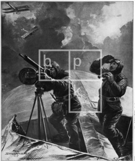 Keywords: Abwehr eines Fliegerangriffs auf der oberen Plattform eines Zeppelin-Luftschiffes - Felix Schwormstädt 1917.jpg Artwork Creator Felix Schwormstädt title Abwehr eines Fliegerangriffs auf der oberen Plattform eines Zeppelin-Luftschiffes Defending against an aerial attack from the top platform of a Zeppelin airship 1917 Watercolor Bildarchiv Preussischer Kulturbesitz Signed bottom left Felix Schwormstädt // 1917 ; more detailed views at en Prussian Cultural Heritage Foundation's website http //bpkgate picturemaxx com/webgate_cms/ - search for Felix Schwormstädt http //bpkgate picturemaxx com/preview php IMGID 30014760 Other versions watermark 1917 paintings Airships in art Men facing left in art Military paintings Paintings of aircraft Paintings of war Paintings with signatures Realist history paintings Aviators in art Paintings of men World War I machine guns World War I machine gunners Felix Schwormstädt Air gunners Soft flight helmets 1917 in aviation PD-old-auto 1938 |