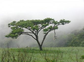 Keywords: acacia tree field mist misty grass thorntree wattle whistling thorn branches foliage landscape nature