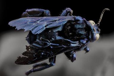 | Keywords: bee bees cleptoparasite taxonomy:binomial=acanthopus excellens taxonomy:binomial=acanthopusexcellens acanthopus excellens acanthopusexcellens acanthopus south america southamerica brazil biml usgs droege usgsbiml pwrc apodea apidae nests parasite nestsparasite metallic blue metallicblue midnight blue midnightblue giant depth of field insect animal texture Monster cleptoparasite, this dramatic species is a nest parasite of bees in the genus Centris and is endemic to South America. Note the one shot of the lovely expanded tibial spurs. I do not know their function, but it may have to do with nest invasions, either digging or gripping the walls of the nest. Lovely metallic blue / purple colors. Note the frayed wings, this bee was at the end of its time on earth when captured. From the Packer Lab. ~~~~~~~~~~{{{{{{0}}}}}}~~~~~~~~~~ All photographs are public domain, feel free to download and use as you wish. Photography Information: Canon Mark II 5D, Zerene Stacker, Stackshot Sled, 65mm Canon MP-E 1-5X macro lens, Twin Macro Flash in Styrofoam Cooler, F5.0, ISO 100, Shutter Speed 200 The murmuring of bees has ceased; But murmuring of some Posterior, prophetic, Has simultaneous come,-- The lower metres of the year, When nature's laugh is done,-- The Revelations of the book Whose Genesis is June. -Emily Dickinson Want some Useful Links to the Techniques We Use? Well now here you go Citizen: Basic USGSBIML set up: www.youtube.com/watch?v=S-_yvIsucOY USGSBIML Photoshopping Technique: Note that we now have added using the burn tool at 50% opacity set to shadows to clean up the halos that bleed into the black background from "hot" color sections of the picture. www.youtube.com/watch?v=Bdmx_8zqvN4 PDF of Basic USGSBIML Photography Set Up: ftp://ftpext.usgs.gov/pub/er/md/laurel/Droege/How%20to%20Take%20MacroPhotographs%20of%20Insects%20BIML%20Lab2.pdf Google Hangout Demonstration of Techniques: plus.google.com/events/c5569losvskrv2nu606ltof8odo or www.youtube.com/watch?v=4c15neFttoU Excellent Technical Form on Stacking: www.photomacrography.net/ Contact information: Sam Droege sdroege@usgs.gov 301 497 5840 Monster cleptoparasite, this dramatic species is a nest parasite of bees in the genus Centris and is endemic to South America. Note the one shot of the lovely expanded tibial spurs. I do not know their function, but it may have to do with nest invasions, either digging or gripping the walls of the nest. Lovely metallic blue / purple colors. Note the frayed wings, this bee was at the end of its time on earth when captured. From the Packer Lab. ~~~~~~~~~~{{{{{{0}}}}}}~~~~~~~~~~ All photographs are public domain, feel free to download and use as you wish. Photography Information: Canon Mark II 5D, Zerene Stacker, Stackshot Sled, 65mm Canon MP-E 1-5X macro lens, Twin Macro Flash in Styrofoam Cooler, F5.0, ISO 100, Shutter Speed 200 The murmuring of bees has ceased; But murmuring of some Posterior, prophetic, Has simultaneous come,-- The lower metres of the year, When nature's laugh is done,-- The Revelations of the book Whose Genesis is June. -Emily Dickinson Want some Useful Links to the Techniques We Use? Well now here you go Citizen: Basic USGSBIML set up: www.youtube.com/watch?v=S-_yvIsucOY USGSBIML Photoshopping Technique: Note that we now have added using the burn tool at 50% opacity set to shadows to clean up the halos that bleed into the black background from "hot" color sections of the picture. www.youtube.com/watch?v=Bdmx_8zqvN4 PDF of Basic USGSBIML Photography Set Up: ftp://ftpext.usgs.gov/pub/er/md/laurel/Droege/How%20to%20Take%20MacroPhotographs%20of%20Insects%20BIML%20Lab2.pdf Google Hangout Demonstration of Techniques: plus.google.com/events/c5569losvskrv2nu606ltof8odo or www.youtube.com/watch?v=4c15neFttoU Excellent Technical Form on Stacking: www.photomacrography.net/ Contact information: Sam Droege sdroege@usgs.gov 301 497 5840 |