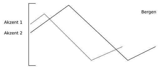 Keywords: Accent 1 and accent 2 in Bergen.de.svg Describes pitch height of accent 1 and accent 2 in bisyllabic words in Bergen Norway Helge Sandøy Talemål Novus Forlag Oslo 1993 ISBN 82-7099-206-2; p 126 2007-08-19 MaEr Norwegian language Phonetics