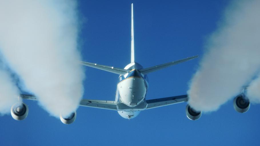 | Keywords: White exhaust contrails stream from the engines of NASA's DC-8 flying laboratory in this photo taken from an HU-25 Falcon flying in trail about 300 feet behind the DC-8. Instruments on the Falcon were measuring the chemical contents of the exhaust contrails at varying distances from the DC-8, which was using both standard JP8 jet fuel and a mix of JP-8 and a plant-derived biofuel. White exhaust contrails stream from the engines of NASA's DC-8 flying laboratory in this photo taken from an HU-25 Falcon flying in trail about 300 feet behind the DC-8. Instruments on the Falcon were measuring the chemical contents of the exhaust contrails at varying distances from the DC-8, which was using both standard JP8 jet fuel and a mix of JP-8 and a plant-derived biofuel. |