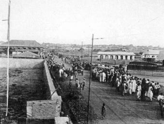 | Keywords: Accra Homowo um1900 300dpi.jpg en A street in Accra Many people from nearby neighborhoods and the surrounding area flock to the city center in order to attend the celebration of the Homowo Festival the annual main festival of the Ga de Eine Straße in Accra Zahlreiche Menschen aus nahegelegenen Stadtteilen und der Umgebung strömen in das Stadtzentrum um an den Feierlichkeiten zum Homowo-Festival teilzunehmen dem alljährlichen Hauptfest der Ga Peter A Schweizer Mission auf der Goldküste Geschichte und Fotografie der Basler Mission im kolonialen Ghana Basel 2002 Author circa 1900 PD-old Ghana in the 1900s Accra in the 20th century Festivals of Ghana Traditional religion in Ghana People of Ghana in the 1900s Images from Mission 21 Basel Historical images of Ghana 18th-century festivals 1910s festivals |