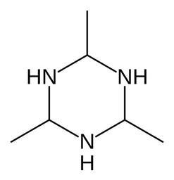 | Keywords: Acetaldehyde ammonia trimer.svg Skeletal formula of acetaldehyde ammonia trimer hexahydro-2 4 6-trimethyl-1 3 5-triazine Created using http //www acdlabs com/download/chemsk html ACD/ChemSketch 10 0 and Inkscape Own 2007-02-26 Fvasconcellos Six-membered nitrogen heterocycles Saturated nitrogen heterocycles Trimers |