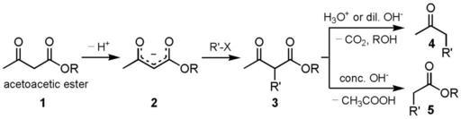 Keywords: Acetoacetic ester synthesis.png Scheme of acetoacetic ester synthesis Source Selfmade Date 22 July 2006 Made with ChemDraw 2006-07-22 own assumed Su-no-G