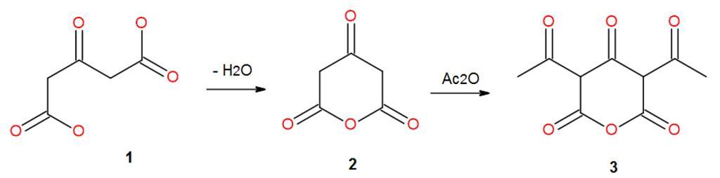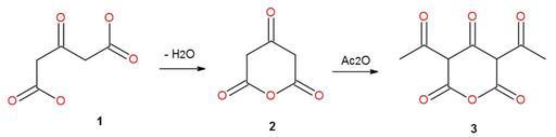 | Keywords: Acetonedicarboxylic acid anhydride from acetonedicarboxylic acid.png en Formation of acetondicarboxylic acid anhydride tetrahydropyran-2 4 6-trione from acetondicarboxylic acid and further acetylation A K Kiang S F Tan and W S Wong Reactions of acetonedicarboxylic anhydride tetrahydropyrantrione and its mono- and di-acetyl derivatives with amines J Chem Soc C 1971 2721-2726 DOI 10 1039/J39710002721 ru Об азо вание ангид ида ацетондика боновой кислоты ее дегид атацией в уксусном ангид иде и дальнейшее ацетили ование A K Kiang S F Tan and W S Wong Reactions of acetonedicarboxylic anhydride tetrahydropyrantrione and its mono- and di-acetyl derivatives with amines J Chem Soc C 1971 2721-2726 DOI 10 1039/J39710002721 2015-12-18 own Kurgus other versions cc-zero Pyrans Acetylation Anhydrides Uploaded with UploadWizard Acetonedicarboxylic acid |