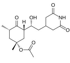 Keywords: Acetoxycycloheximide.svg Chemical structure of acetoxycycloheximide Own 12 28 20 May 2014 UTC Ed Edgar181 Glutarimides Acetate esters