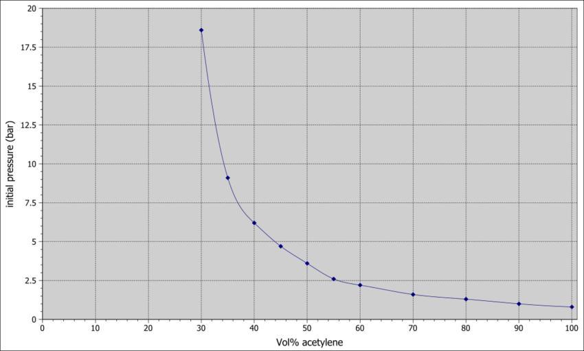 | Keywords: Acetylene nitrogen mixtures stability pressures.svg en Stability pressures of acetylene nitrogen mixtures de Stabilitätsgrenzdruck von Acetylen-Stickstoff-Gemischen own Steffen 962 2010-02-25 ignition source melting wire with 70 J plotted with data from Th Schendler H -P Schulze Chem -Ing -Tech 62 1990 1 41 ”43 Acetylene Explosions |