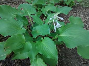 Keywords: hosta 23J in bloom Hosta longipes latifolia confirmed by combo of red spotted petioles and glaucous bottom of leaf white flower hosta earlysept 23j ach23