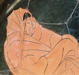 | Keywords: Achilles embassy Louvre G264 n2.jpg Achilles sulking detail from a scene representing the embassy of Odysseus to Achilles Book 9 of the Iliad Attic red-figure cup ca 480 BC “470 BC From Vulci Achille en colère dĂ©tail d'une scène reprĂ©sentant l'ambassade d'Ulysse auprès d'Achille livre IX de l ™Iliade Coupe attique Ă figures rouges du Peintre de Tarquinia v 480 “470 av J -C Provenance Vulci H 14 1 cm 5 ½ in Diam 32 1 cm 12 ½ in W 40 4 cm 15 Âľ in Museum Louvre Department of Greek Etruscan and Roman Antiquities Sully 1st floor case 6 object history credit line De Witte Bequest 1890 accession number G 264 Jastrow 2007 other versions <gallery> Image Achilles embassy Louvre G264 jpg Image Achilles embassy Louvre G264 n3 jpg Hermes </gallery> Embassy to Achilles Achilles in ancient Greek pottery Tarquinia Painter Greek antiquities in the Louvre - Room 39 5th-century BC pottery in France Paris |