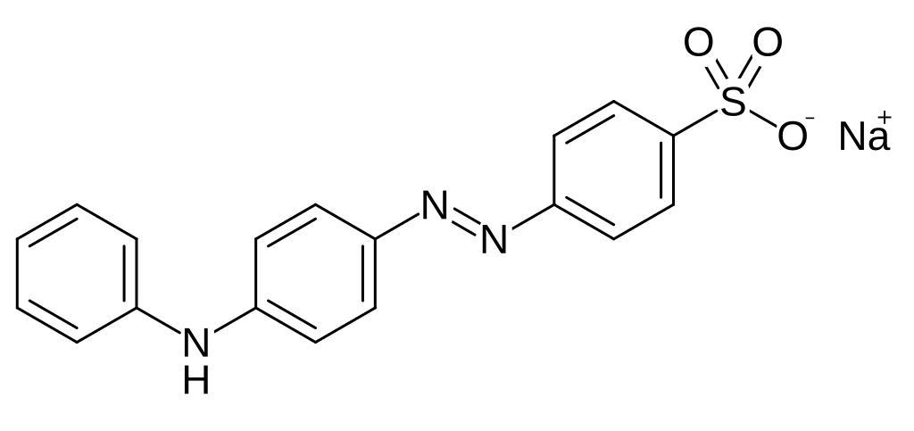 Keywords: Acid orange 5.svg Chemical structure of Acid orange 5 Tropaeolin OO Fast Yellow C I Acid Orange 5 Own 02 18 21 January 2015 UTC Ed Edgar181 Azo dyes Benzenesulfonates Sodium salts of organic compounds