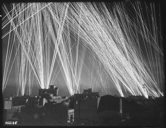 | Keywords: Ack-Ack fire during an air raid on Algiers, by the Nazis. - NARA - 531171.tif Scope and content General notes Use War and Conflict Number 1018 when ordering a reproduction or requesting information about this image 531171 Local identifier 111-SC-182245 Department of Defense Department of the Army Office of the Chief Signal Officer 09/18/1947 - 02/28/1964 Still Picture Records Section Special Media Archives Services Division NWCS-S National Archives at College Park 8601 Adelphi Road College Park MD 20740-6001 1943 Record group Record Group 111 Records of the Office of the Chief Signal Officer 1860 - 1985 Record group ARC 440 Signal Corps Photographs of American Military Activity compiled 1754 - 1954 Series ARC 530707 File unit File unit ARC Variant control numbers NAIL Control Number NWDNS-111-SC-182245 yes Other versions NARA-cooperation PD-USGov Light painting |