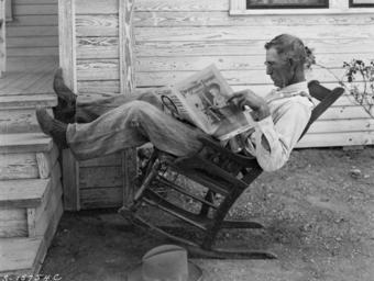 | Keywords: Ackerman farmer.jpg Farmer in rocking-chair reading The Progressive Farmer Farmer reading his farm paper By George W Ackerman Coryell County Texas September 1931 The Progressive Farmer September 1931 George W Ackerman PD-USGov 1931 in Texas Coryell County Texas Newspapers of Texas Farmers from the United States People sitting in rocking chairs Reading men George W Ackerman Black and white photographic portraits of men Men facing left Black and white photographs of Texas Newspaper readers Sitting men 1931 photographs |