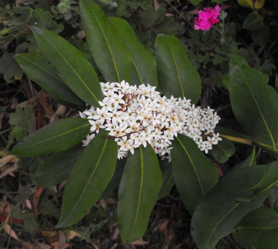 | Keywords: Acokanthera oblongifolia 2.jpg Acokanthera oblongifolia Blomme van 'n Duinegifboom in die Quail Botaniese Tuine in Encinitas Kalifornië Dit is natuurlik verspreid van die Oos-Kaapse tot KwaZulu-Natalse kus en Flowers of a Dune Poison-bush at the Quail Botanical Gardens in Encinitas California USA It naturally occurs from the Eastern Cape to KwaZulu-Natal coastline South Africa The leaves have indistinct lateral veins and are usually oblanceolate in shape The fruit are >20mm <20mm in the similar A oppositifolia Own Stickpen 2009-04-14 released to public domain Acokanthera oblongifolia |