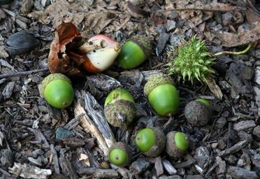 Keywords: acorns green tulip bulb nuts scattered ground