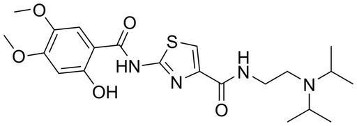 | Keywords: Acotiamide.png ChemDraw ” see Manual of Style chemistry /Structure drawing WikiProject Chemistry - structure drawing for detailed instructions Please drop me a note if you need the source file Own 2010-03-24 Chemgirl131 Talk <nowiki> </nowiki> Special Contributions/Chemgirl131 Contribs PD-chem Chemgirl131 original upload log en wikipedia Sreejithk2000 CommonsHelper page en wikipedia Acotiamide png 2010-03-24 23 04 Chemgirl131 3384×1195× 43255 bytes <nowiki> </nowiki> Tertiary amines Gastrointestinal system drugs Dimethoxybenzenes Salicylamides Aminothiazoles Acetylcholinesterase inhibitors |