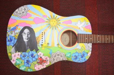 Keywords: acoustic guitar hippie guitar painted 60ies art artist music musical play instrument musician entertainment