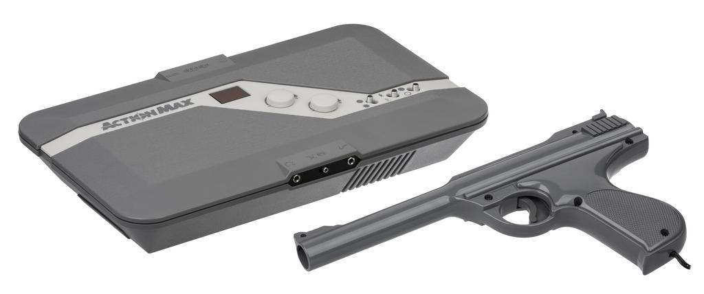 | Keywords: Action-Max-Set-FR.jpg  The Action Max video game console Released in 1987 by Worlds of Wonder it was a console that worked in conjunction with a VCR to play light gun games Games came on VHS tapes and were on-rails shooters that featured no real interactive elements The console merely kept track of how many hits were scored during the game utilizing an external red light to alert players to successful hits own 2015-05-06 Evan-Amos User Evan-Amos/EABanner Electronic devices on white background Taken with Nikon D7100 Evan-Amos Video game platforms |